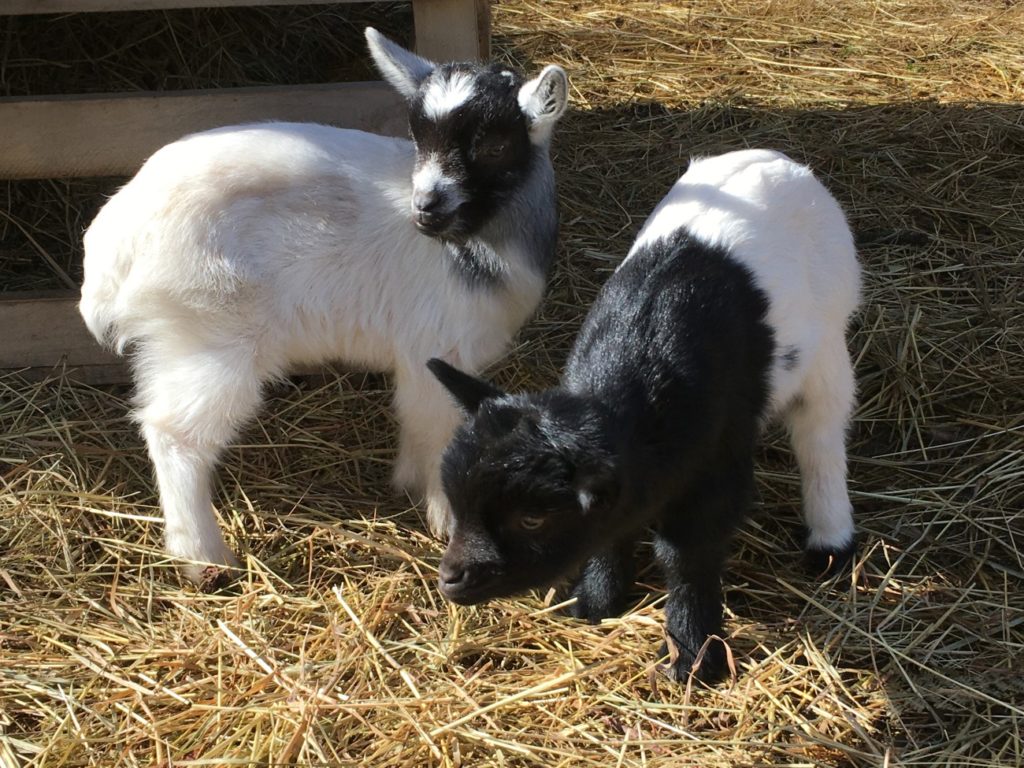 Myrtille et Noisette : curieuses et coquines chèvres naines, elles sont notre service d’entretien « spécial roncier ». Difficile de les empêcher de s’échapper et de grimper sur les rochers. La plupart du temps, elles nous regardent depuis là haut.